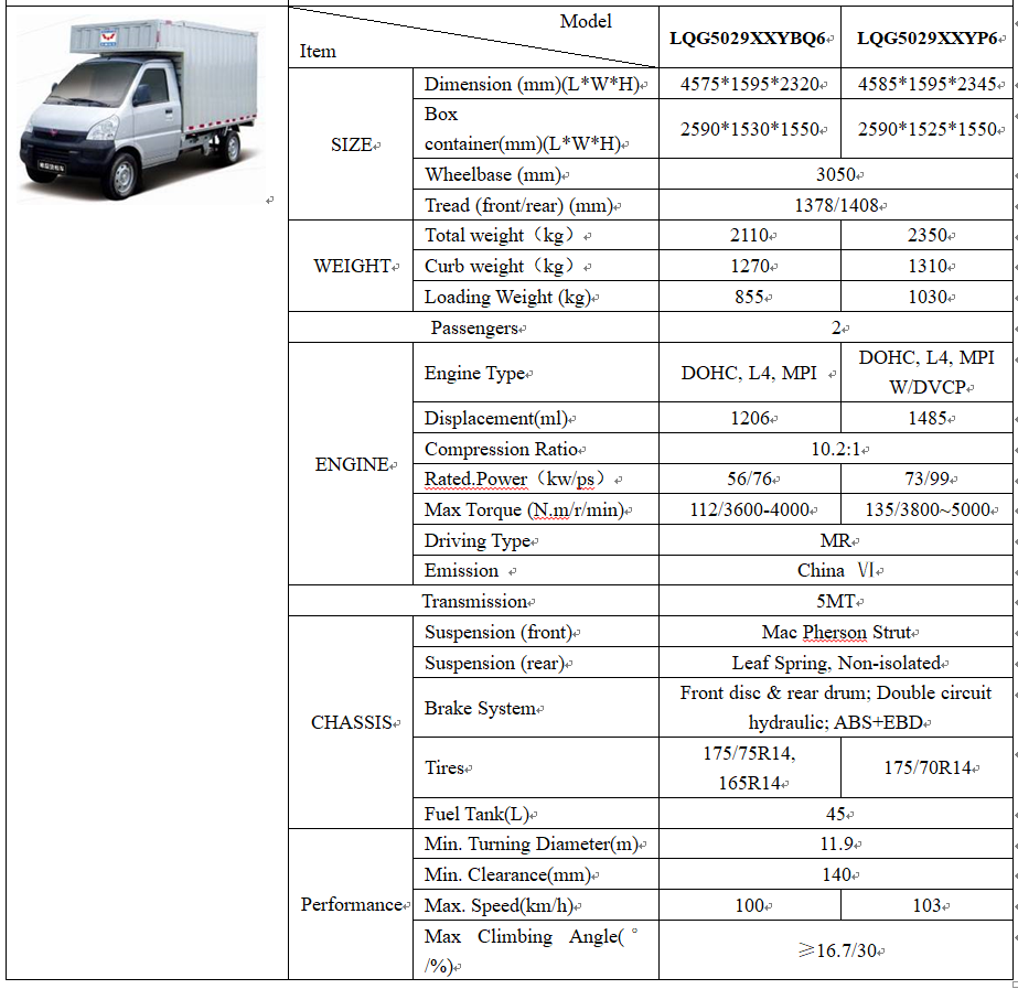 WULING G120 VAN, Sale Price: CNY 83600 ( with 13% VAT )